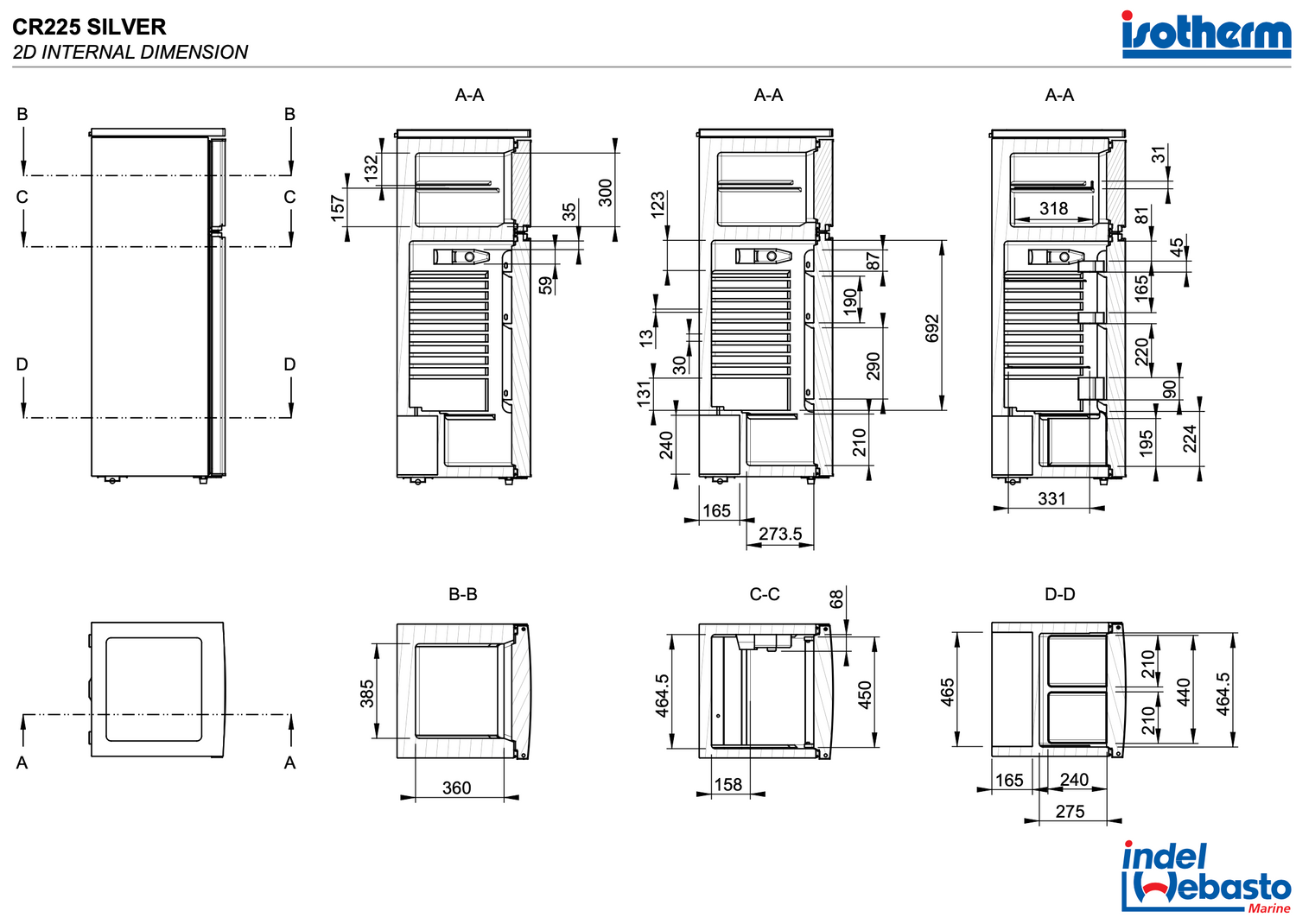 The CR Silver line refrigerator range composed of two models CR 225. This spacious two door fridge-freezer is ideal for big campervans, motorhomes or caravans offering on board storage for fresh and frozen consumables, with have silver painted color finishing and is available with right hand or left hand side opening.